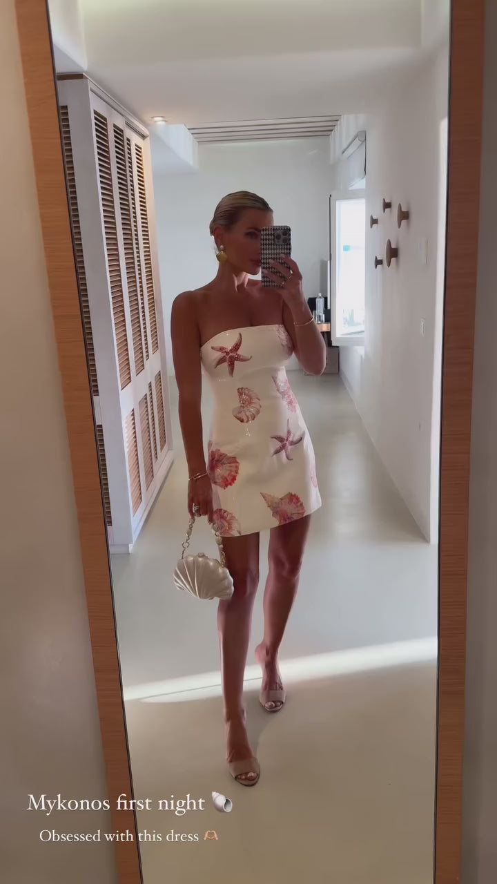 A For Luxe Sake & Runaway The Label bestseller now seen on Billie Shepherd in Mykonos - the Ibiza Sand Seashell Sequin Mini is your go-to for beach clubs and golden hour.